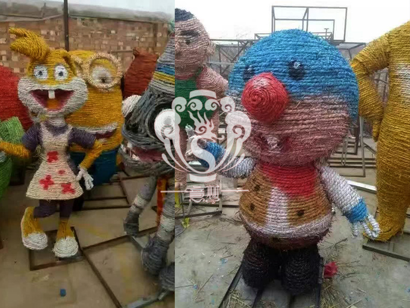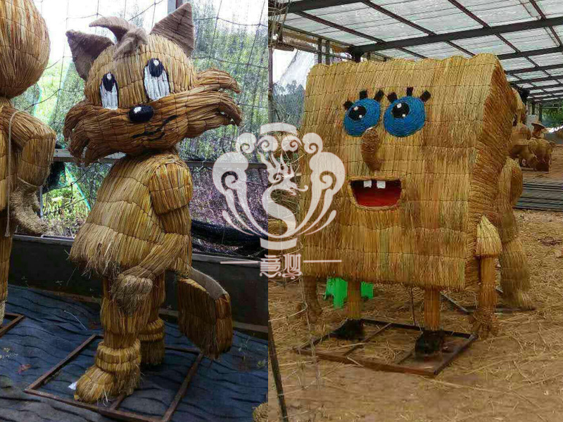 稻草人藝術,不僅充分利用的稻草秸稈制作出各種有趣的形象,與此同時還能減少秸稈的焚燒,為我們的藍天白云,子孫后代做一份貢獻!現(xiàn)在的精致稻草人藝術通常是由專業(yè)美術老師的造型放樣,然后由焊工師傅焊接出立體造型造型,然后以稻草或者稻草繩為材料編捆制作而成。