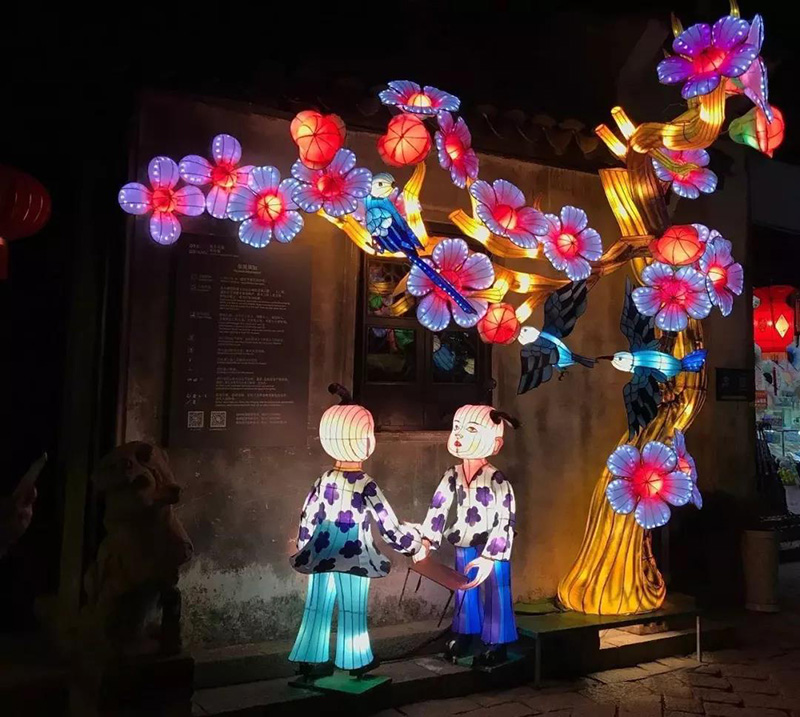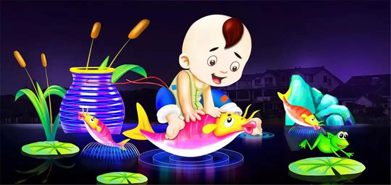 用光影講述周莊故事。古鎮(zhèn)燈區(qū)分為迎賓區(qū)、水上區(qū)及“春夏秋冬”四個板塊,其中迎賓區(qū)為全福路主入口區(qū)域,以周莊印象、周莊八俗,鋪展開水鄉(xiāng)畫卷;水上區(qū)著重描摹南湖秋月的如詩畫卷,湖畔燈影,令人流連忘返;春生(童年)、夏長(青年)、秋收(中年)、冬藏(暮年),以“春夏秋冬”四個板塊寓意人生四個階段,或趣味橫生,或詩情畫意,或碩果累累,或閑適安然,令人驚嘆不已。