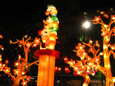 牛車水彩燈節(jié)活動(dòng)的主題是“桃滿花香牛車水,福豬迎春賀新歲”。春節(jié)的燈飾是歷年來(lái)最多的,包括406盞福豬彩燈、466盞蟠桃彩燈、1000盞印有十二生肖圖案的金幣彩燈及8處大型燈組。