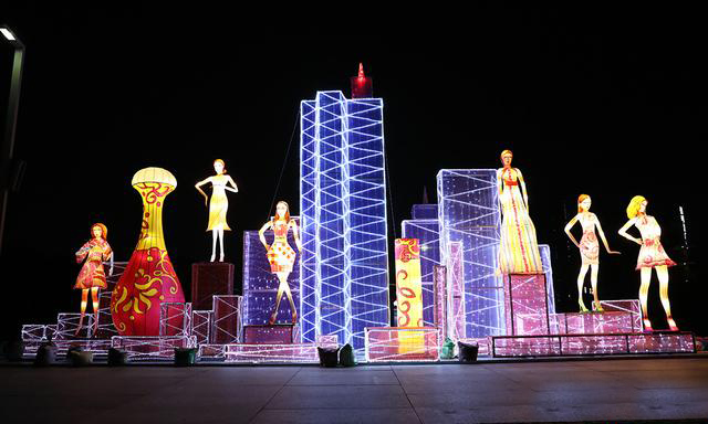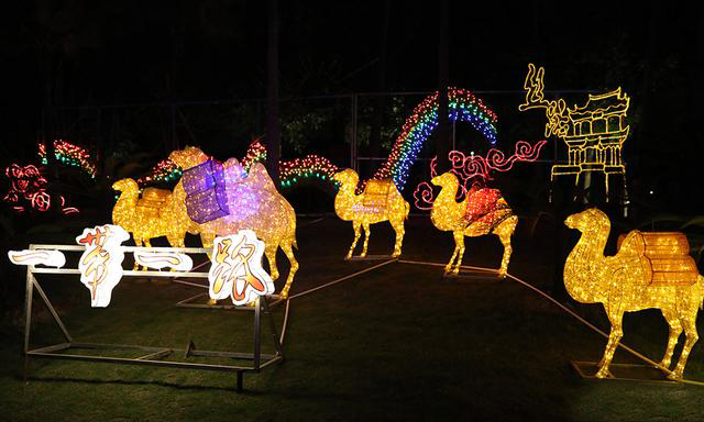 以"一帶一路"為主題,重現絲綢之路的風情,時尚的光雕顏色豐富多彩,造型獨特,十分引人注目。
